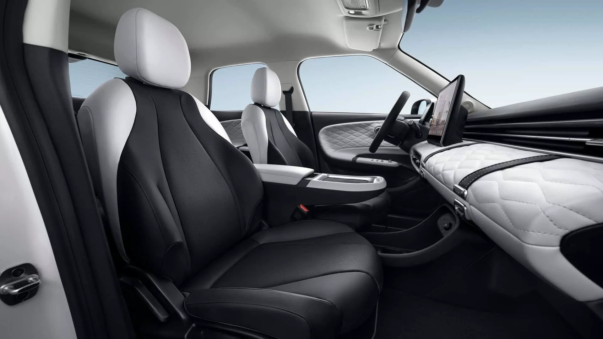 考虑到这款车的起步价,内饰看起来设备齐全。驾驶员前方是双色皮革方向盘和一块显现重要车辆细节的小屏幕。与现在简直一切新车相同,大型信息文娱屏幕坐落仪表板中心,而下方是一对润滑的金属通风口。咱们特别喜爱横跨车门面板和仪表板下半部分的白色绗缝皮革,咱们以为它为车厢增添了一些豪华感。