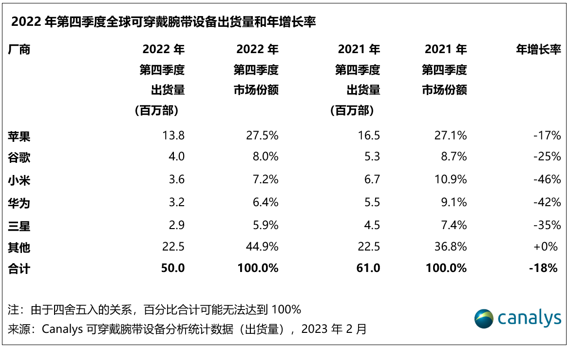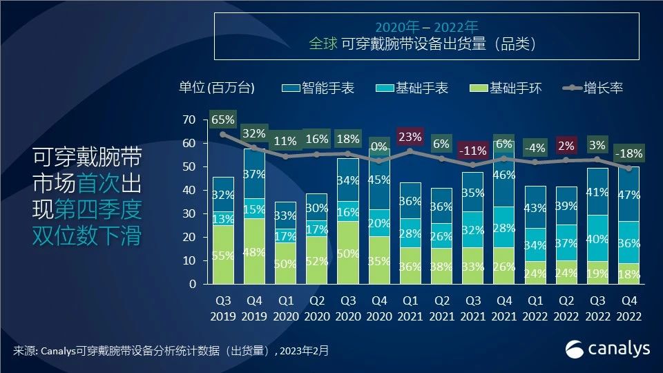 Canalys:2022 年第四季度,可穿戴腕带设备市场跌幅达 18%
